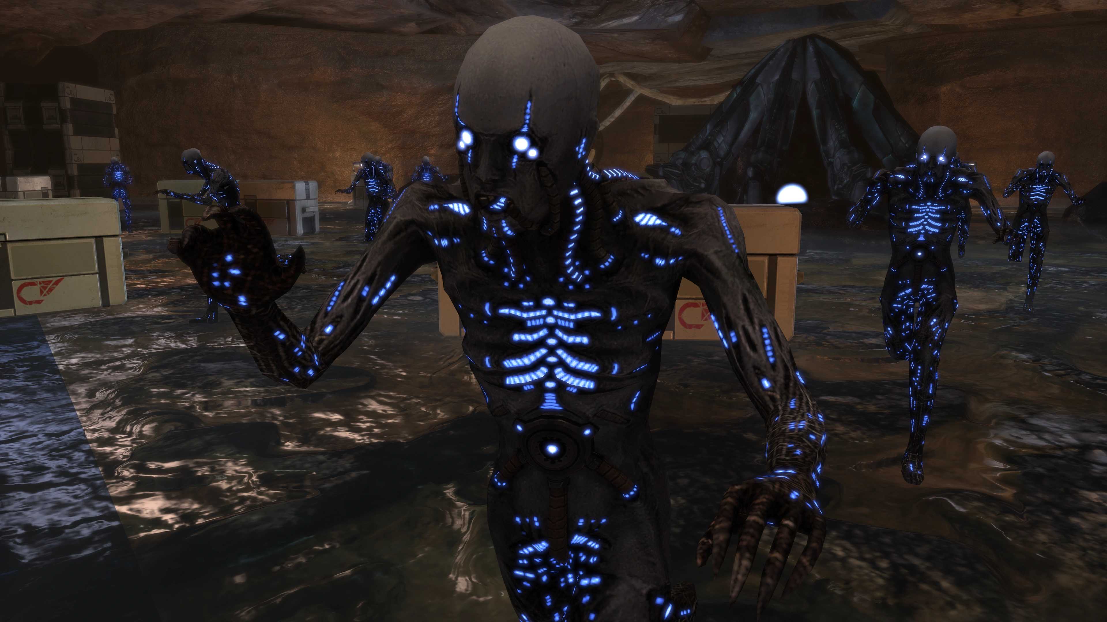 Once all the initial husks are down, wait for your powers to recharge, then place your squadmates behind a pair of crates on the left side of the main chamber, to provide great cover and a clear firing solution on both tunnels. Once you are ready, head for the tunnels; ten more husks will run out when you get close to them. There is a containment cell at the entrance of each tunnel, thus making the main fight considerably easier. The assignment finishes with the death of the final husk.