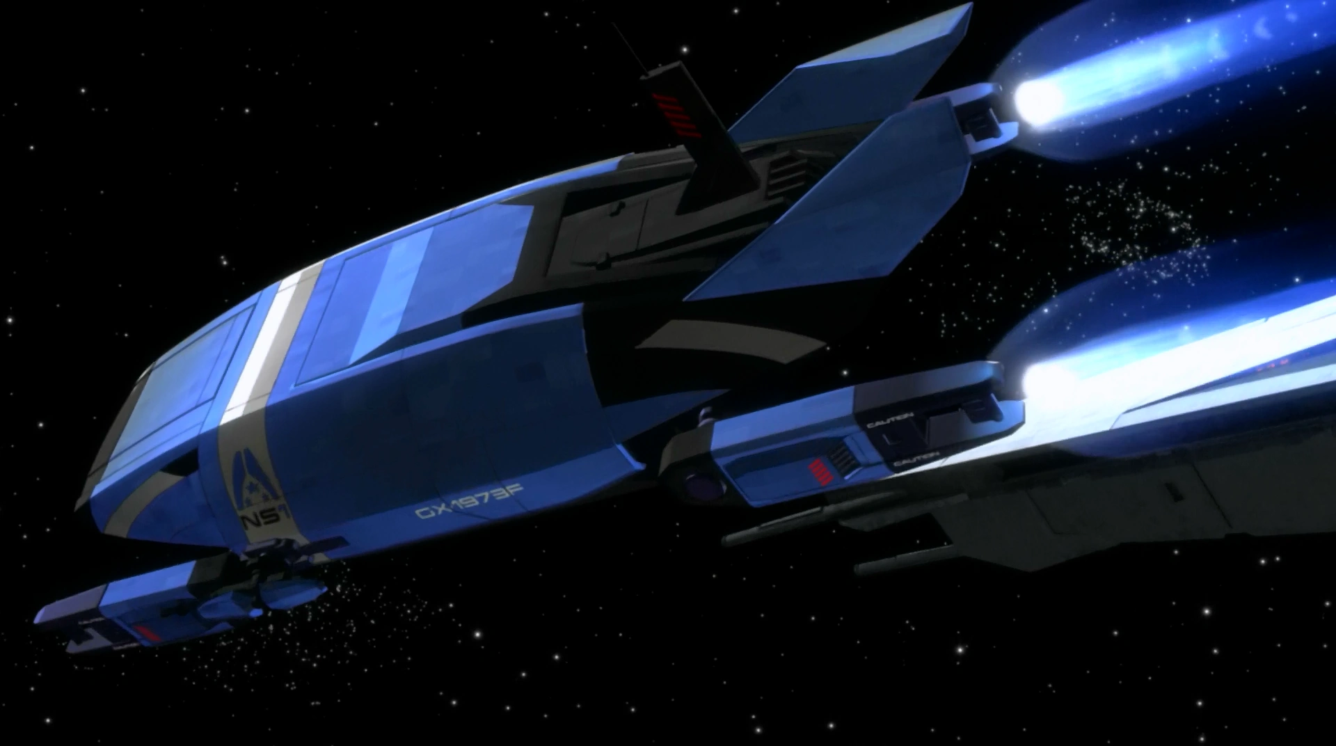 The larger mass of the Normandy SR-2—nearly twice the mass of the original—meant that it could not land on the surfaces of most planets with ease and had to be provided with one of these shuttles for ease of travel.
