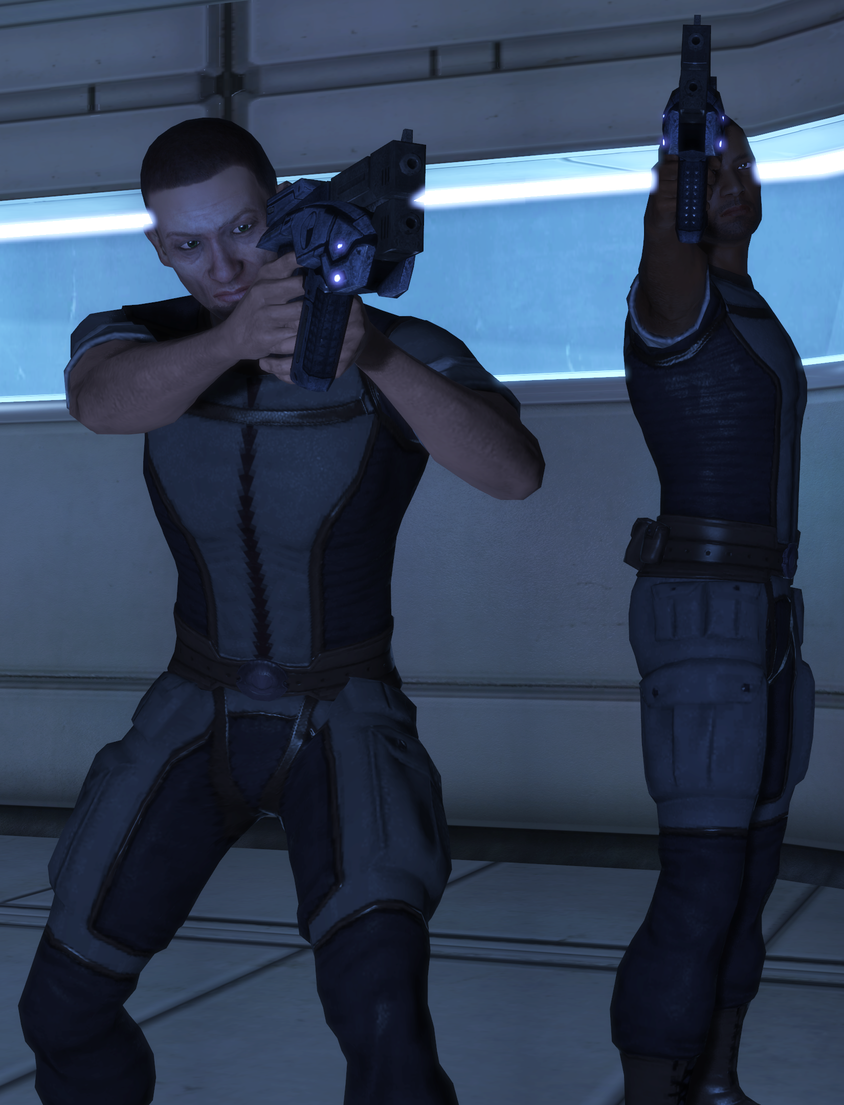 Two workers are encountered on the Citadel: Expose Saren mission right after the fight in Chora's Den and before meeting Fist. Shepard can convince them to leave without fighting, or can just shoot them outright.